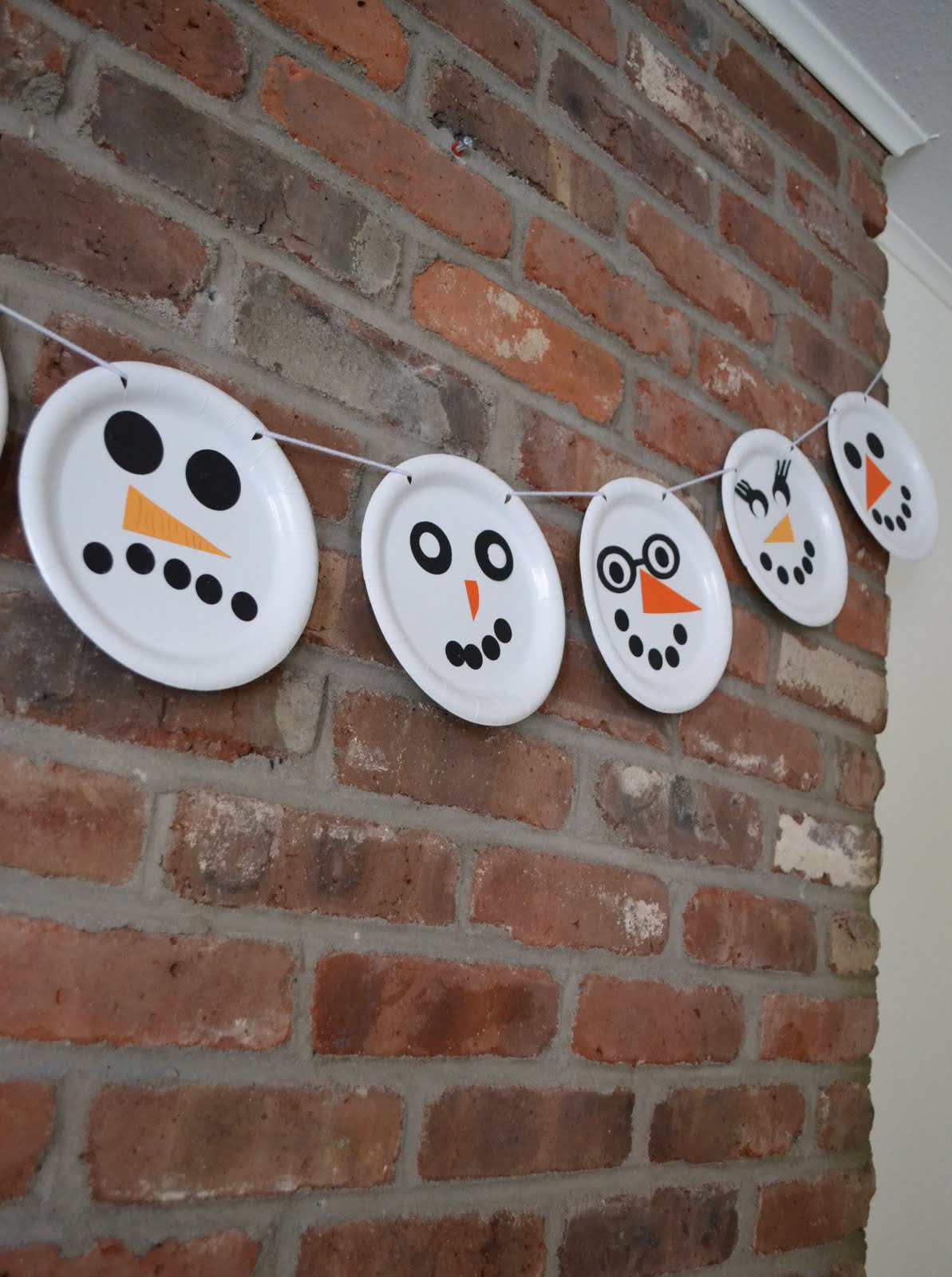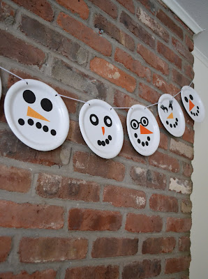 this craft was easy enough for my 2 year old to do. i purchased white paper plates at the dollar store and we used different colors of card stock to embellish our snowmen. my little lady wanted them hung over the fireplace, so that's where they hang...i hope they won't melt!